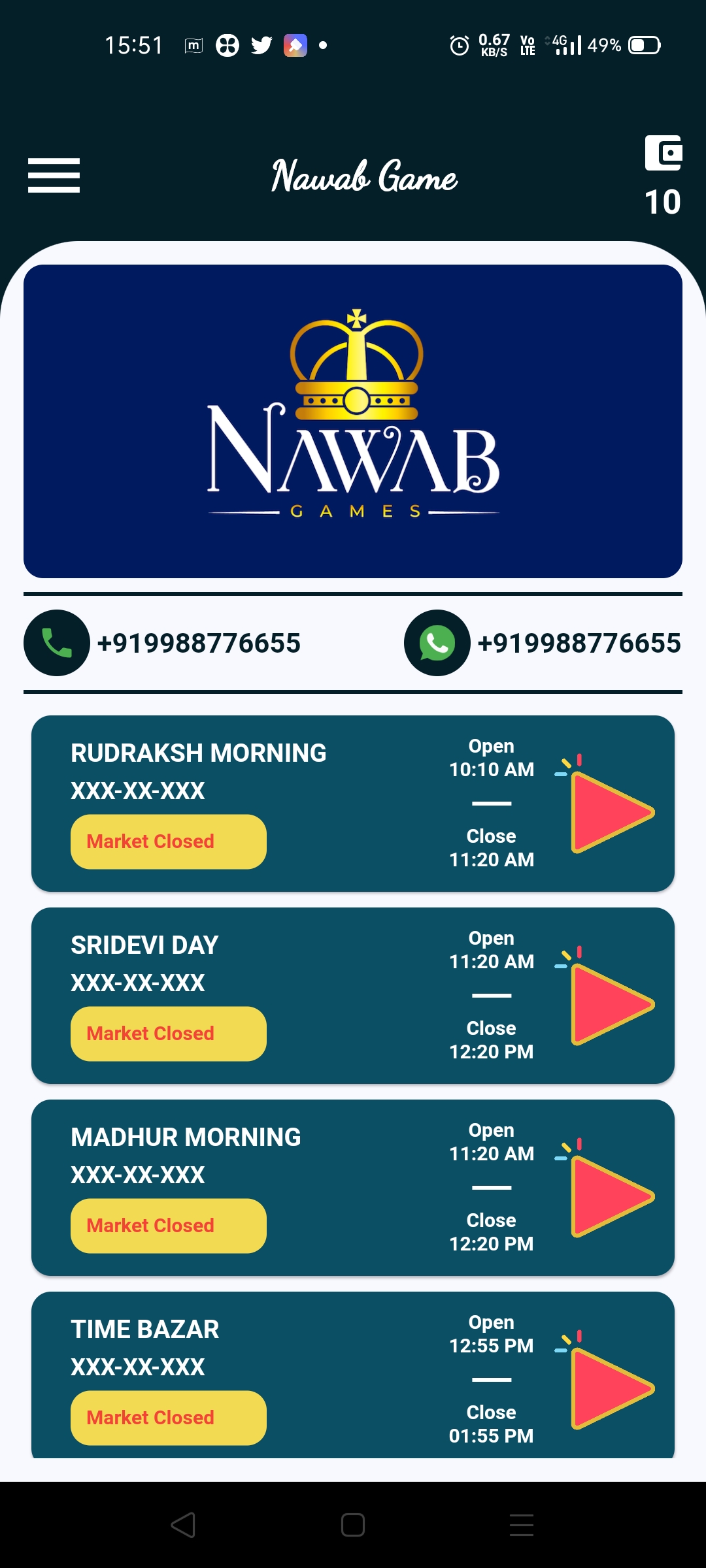 Let your guessing win you massive amount through Nawab GamesApp. Join our platform for expert advice and Matka tips. Get the most trusted results daily. Play Online Matka through Nawab Games is the most preferred and platform for online Matka play. It provides the most updated Satta Matka play results. Our app is one stop for all the updated live results for various Matka market. Use Nawab Gamesto get the live updated results and earn huge profit. Earn Real Money through your tricks and updates.